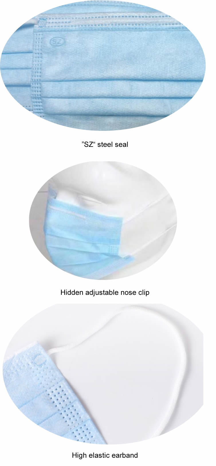 How to use1. wash hands, dry them before opening the box. Put your finger through the ear loops. Nose bar should be found above while the blue layer should be at outside. Place the mask to cover your nose and mouth;